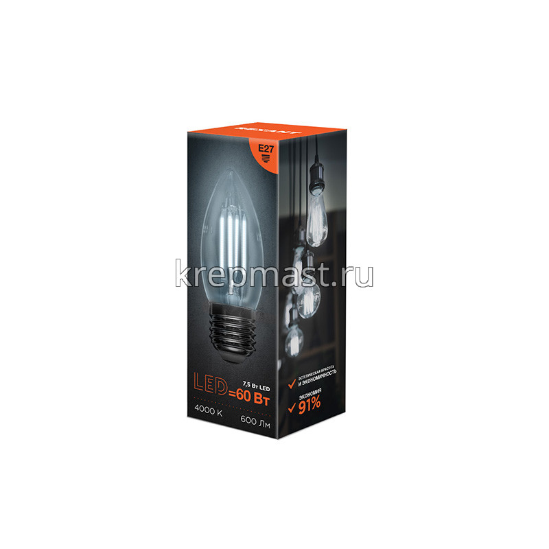 Лампа свеча 7,5Вт Е27 4000K в интернет-магазине «Мастер Крепежа» по цене 122 руб. Более 12 наименований товаров в наличии в категории Лампы светодиод. СВЕЧА. Купить лампа свеча 7,5вт е27 4000k в Алексеевск выгодно Вы можете on-line на нашем сайте, или отправив заявку по почте, а также по телефону или в пункте выдачи компании г. Казань, ул. Татарстан, 9, магазин "Мастер Крепежа". Доставка по Республике Татарстан и другие регионы РФ.