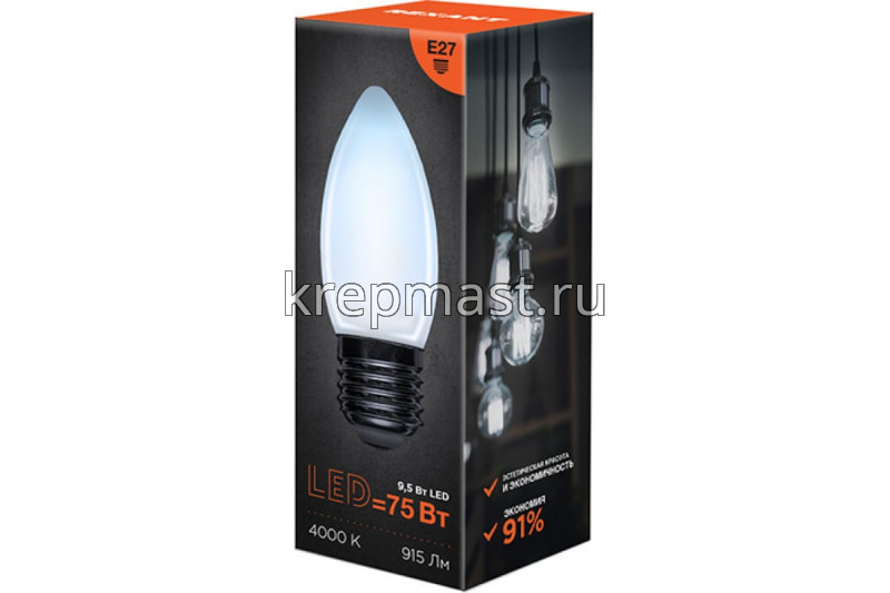 Лампа свеча 9,5Вт Е27 4000K в интернет-магазине «Мастер Крепежа» по цене 134 руб. Более 12 наименований товаров в наличии в категории Лампы светодиод. СВЕЧА. Купить лампа свеча 9,5вт е27 4000k в Алексеевск выгодно Вы можете on-line на нашем сайте, или отправив заявку по почте, а также по телефону или в пункте выдачи компании г. Казань, ул. Татарстан, 9, магазин "Мастер Крепежа". Доставка по Республике Татарстан и другие регионы РФ.