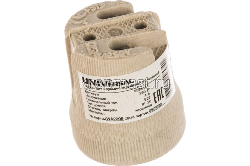Патрон Е27 фарфоровый (рифленый) в интернет-магазине «Мастер Крепежа» по цене 24 руб. Более 8 наименований товаров в наличии в категории Патроны. Купить патрон е27 фарфоровый (рифленый) в Алексеевск выгодно Вы можете on-line на нашем сайте, или отправив заявку по почте, а также по телефону или в пункте выдачи компании г. Казань, ул. Татарстан, 9, магазин "Мастер Крепежа". Доставка по Республике Татарстан и другие регионы РФ.