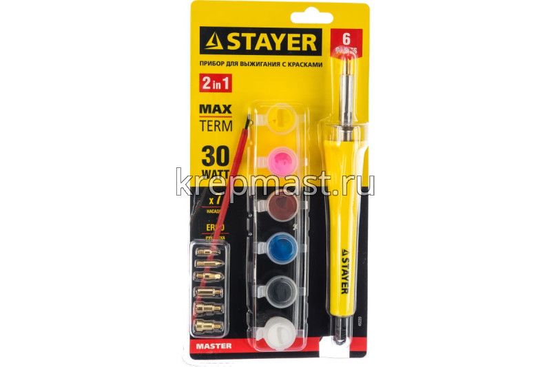 Прибор для выжигания STAYER с наб.насадок в интернет-магазине «Мастер Крепежа» по цене 1496 руб. Более 10 наименований товаров в наличии в категории Паяльники. Купить прибор для выжигания stayer с наб.насадок в Алексеевск выгодно Вы можете on-line на нашем сайте, или отправив заявку по почте, а также по телефону или в пункте выдачи компании г. Казань, ул. Татарстан, 9, магазин "Мастер Крепежа". Доставка по Республике Татарстан и другие регионы РФ.
