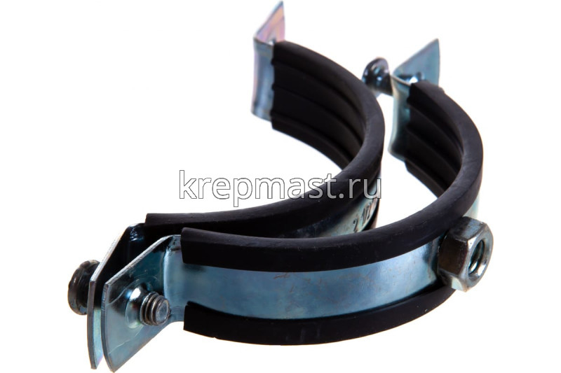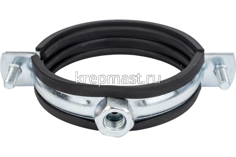 Хомут сантехнический с гайкой М8 74-80 мм представляет собой две металлические пластины, соединенные по краям регулировочными винтами м6 и резиновым уплотнителем. К хомуту приварена гайка м6 с метрической резьбой. Диаметр обжима трубы составляет от 74 до 80 мм. Изготавливается из оцинкованной стали толщиной 1.5 мм.