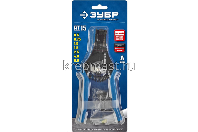 Стриппер ЗУБР АТ-15 полуавтомат. 0,5-6мм2 в интернет-магазине «Мастер Крепежа» по цене 1459 руб. Более 18 наименований товаров в наличии в категории Клещи / стрипперы / сьемники стопорных колец. Купить стриппер зубр ат-15 полуавтомат. 0,5-6мм2 в Алексеевск выгодно Вы можете on-line на нашем сайте, или отправив заявку по почте, а также по телефону или в пункте выдачи компании г. Казань, ул. Татарстан, 9, магазин "Мастер Крепежа". Доставка по Республике Татарстан и другие регионы РФ.