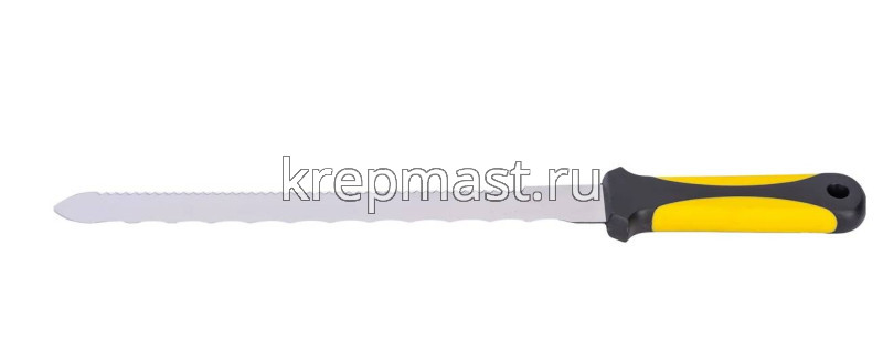 Нож для резки теплоизоляционных плит FIT двустороннее лезвие 240х27 мм, нерж.сталь обладает прямой и серрейторной заточкой. Прорезиненная рукоять исключает выскальзывание. Простота эксплуатации позволяет применять инструмент в ремонтных работах. Прочный корпус выдерживает большие нагрузки.