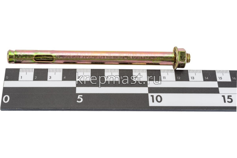 Анкер с гайкой 10 х 130 изготовлен из высокоуглеродистой стали со специальным цинковым покрытием и применяется для надежного крепления тяжеловесных конструкций к твердым основаниям из полнотелых материалов.