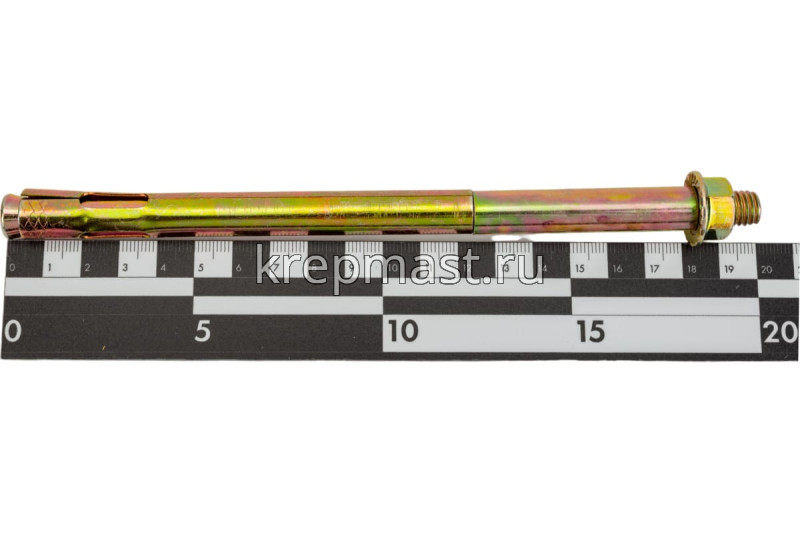 Анкер с гайкой 12 х 200 изготовлен из высокоуглеродистой стали со специальным цинковым покрытием и применяется для надежного крепления тяжеловесных конструкций к твердым основаниям из полнотелых материалов.