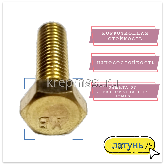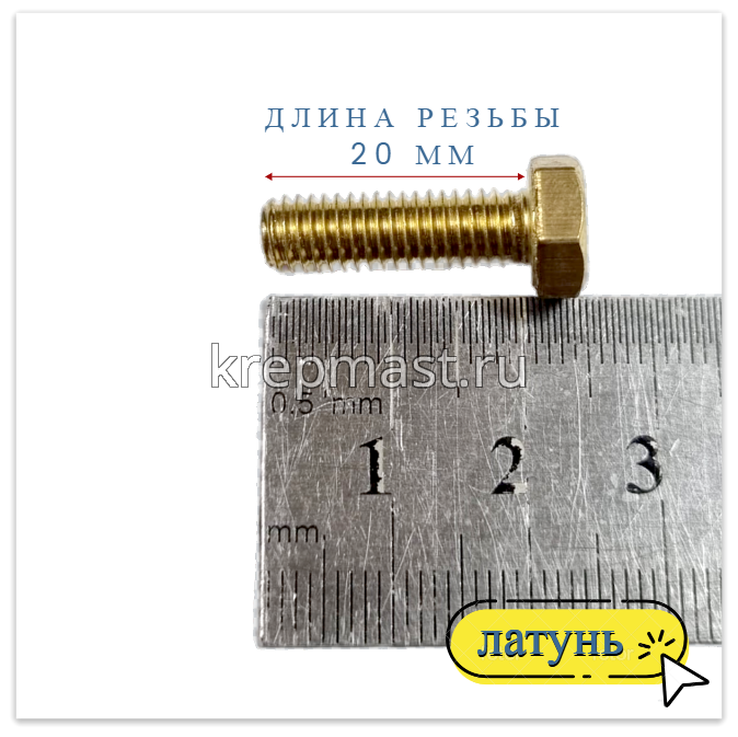 Болт 6х20 DIN 933 латунь в интернет-магазине «Мастер Крепежа» по цене 50 руб. Более 26 наименований товаров в наличии в категории Болты латунные DIN 933. Купить болт 6х20 din 933 латунь в Алексеевск выгодно Вы можете on-line на нашем сайте, или отправив заявку по почте, а также по телефону или в пункте выдачи компании г. Казань, ул. Татарстан, 9, магазин "Мастер Крепежа". Доставка по Республике Татарстан и другие регионы РФ.