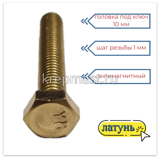 Болт 6х35 DIN 933 латунь в интернет-магазине «Мастер Крепежа» по цене 79 руб. Более 26 наименований товаров в наличии в категории Болты латунные DIN 933. Купить болт 6х35 din 933 латунь в Алексеевск выгодно Вы можете on-line на нашем сайте, или отправив заявку по почте, а также по телефону или в пункте выдачи компании г. Казань, ул. Татарстан, 9, магазин "Мастер Крепежа". Доставка по Республике Татарстан и другие регионы РФ.