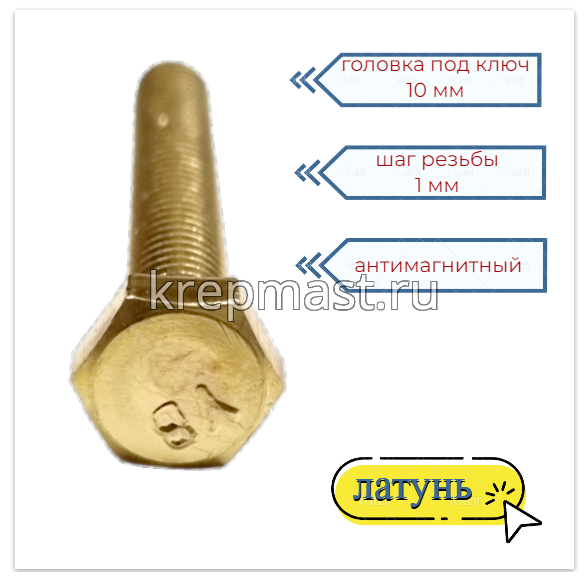 Болт 6х40 DIN 933 латунь в интернет-магазине «Мастер Крепежа» по цене 86 руб. Более 26 наименований товаров в наличии в категории Болты латунные DIN 933. Купить болт 6х40 din 933 латунь в Алексеевск выгодно Вы можете on-line на нашем сайте, или отправив заявку по почте, а также по телефону или в пункте выдачи компании г. Казань, ул. Татарстан, 9, магазин "Мастер Крепежа". Доставка по Республике Татарстан и другие регионы РФ.