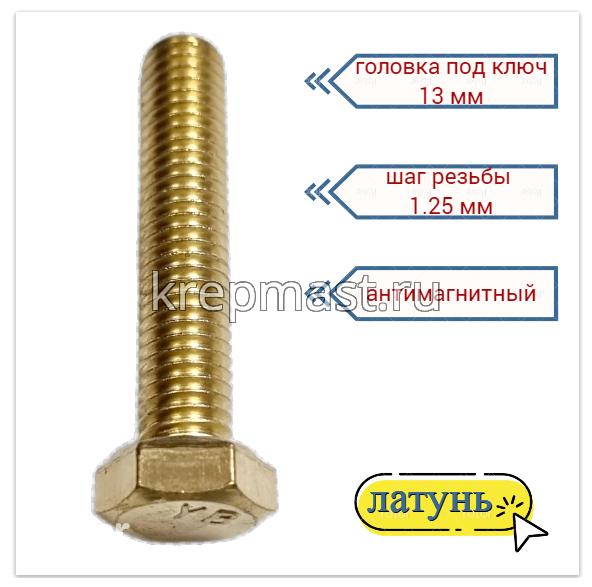 Латунный болт DIN 933 М8 х 40 используется в случае, когда необходимо создать немагнитный узел. Латунный болт М8 применяется в приборостроении, авиации, атомной промышленности. Латунный крепеж стоек к органическим кислотам и углекислым растворам.
