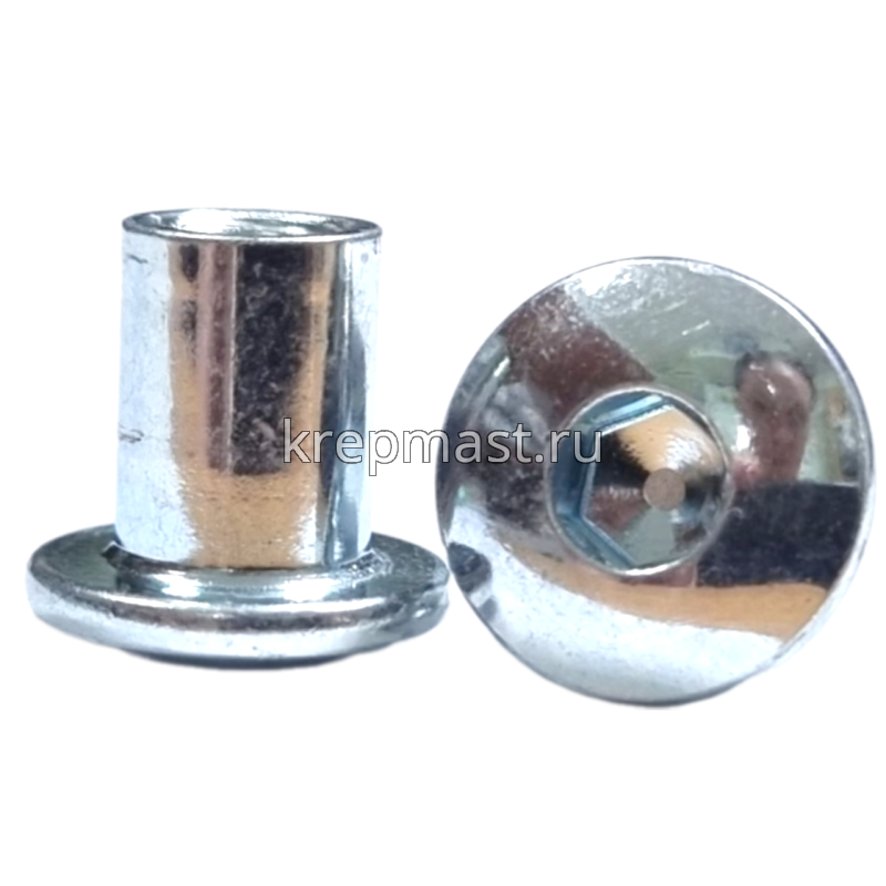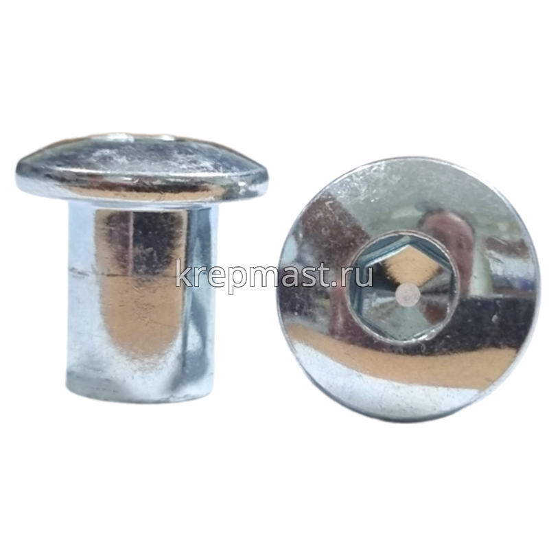 Гайка Эриксона с полукруглой головкой М6 (сталь) применяется с мебельными винтами для соединения, стяжки элементов и конструкций при производстве мебели.