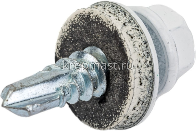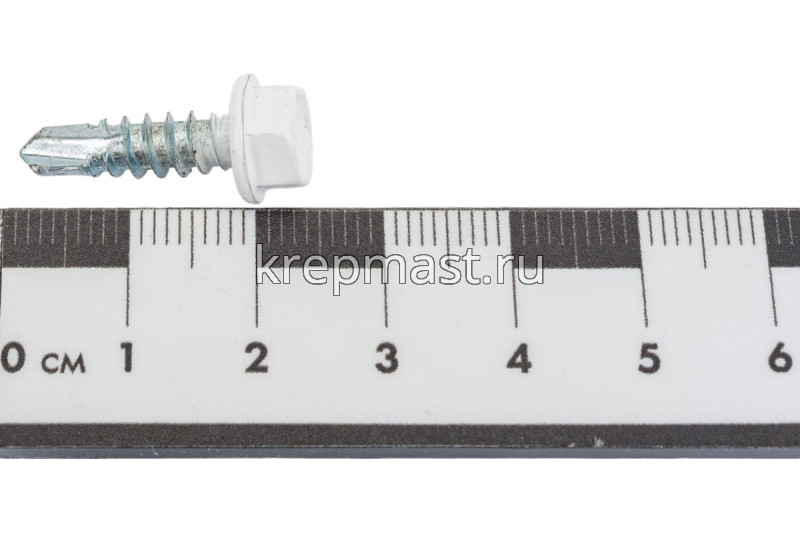 Кровельный саморез окрашенный с шайбой и резиновой прокладкой EPDM DIN 7504 5,5 х 19 по металлу RAL 9003 (цвет белый) - представляет из себя саморез с шестигранной головкой, фланцем и резиновой прокладкой для эффективного прижатия листового металла к основанию.