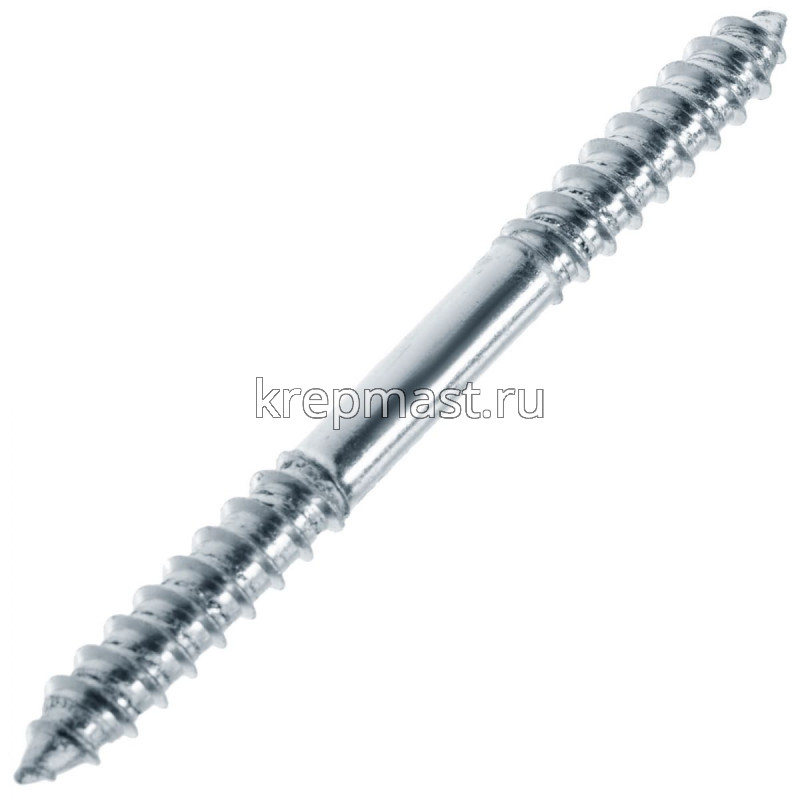 Двусторонний шуруп изготавливается из высококачественной инструментальной стали марки С10008. Для защиты от негативного воздействия влаги и появления коррозии, саморез с двухсторонней резьбой покрывается тонким слоем белого цинка (горячее цинкование).
