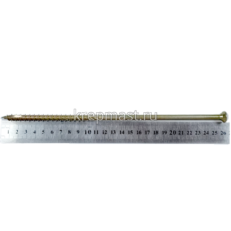 Конструкционный саморез по дереву с потайной головкой 8,0 х 260 совершает в одно движение такие операции, как накернивание, засверливание, зенковка и вворачивание.