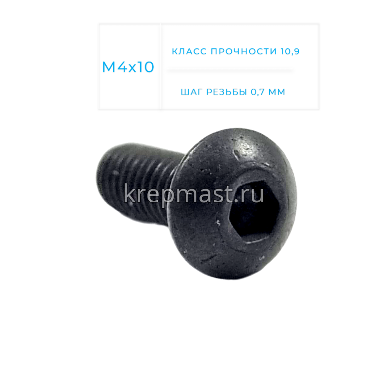 Винт с полукруглой головкой и внутренним шестигранником под ключ ISO 7380 4 х 10 черн. без покрытия классом прочности 10.9 применяется в производственных и промышленных областях (очень популярен в мебельном производстве) совместно с шайбами, гайками и втулками с соответствующим размером резьбы.