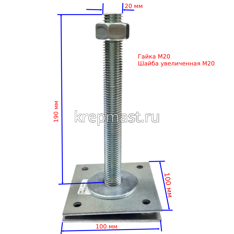 Стойка регулировочная 100(110) х 100(110) h=20 d=20мм