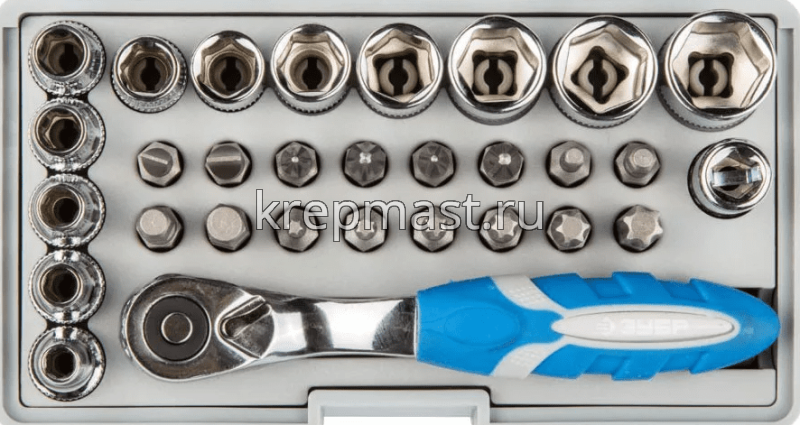 Набор ЗУБР бит с магнитным адаптером и головками 31 предмет охватывает большое количество различных типоразмеров.