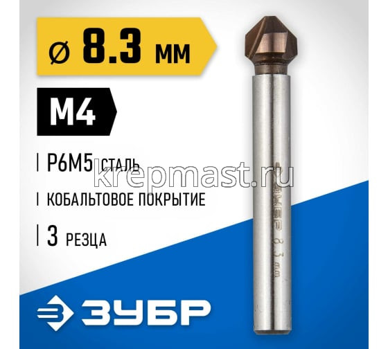 Зенкер ЗУБР конус, цилиндр.хвост. 4мм(д.8,3х50мм)
