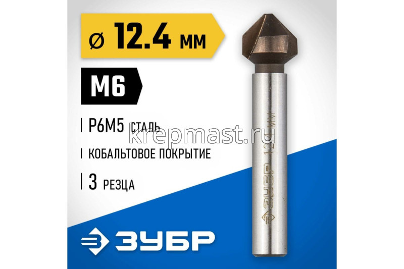 Зенкер ЗУБР конус, цилиндр.хвост. 6мм(д.12,4х56мм)
