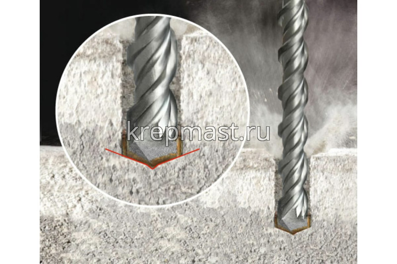 Бур SDS+ 5 х 160мм рассчитан на использование на средних и тяжелых перфораторах ударного действия с зажимом SDS-plus.
