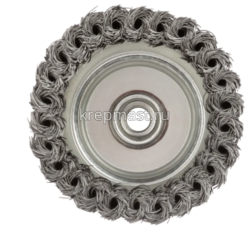 Корщетка-чашка 100 мм используется для шлифовальных и обдирочных работ в угловых шлифовальных машинах. Оснастка крепится к инструменту при помощи гайки М14. Рабочая поверхность щетки — витая стальная проволока.