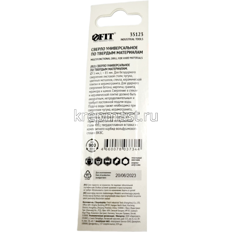 Сверло универсальное 5х85мм (сталь, чугун, цв.мет, стекло, керамогранит) в интернет-магазине «Мастер Крепежа» по цене 145 руб. Более 13 наименований товаров в наличии в категории СВЕРЛА универсальные (опалубочные). Купить сверло универсальное 5х85мм (сталь, чугун, цв.мет, стекло, керамогранит) в Алексеевск выгодно Вы можете on-line на нашем сайте, или отправив заявку по почте, а также по телефону или в пункте выдачи компании г. Казань, ул. Татарстан, 9, магазин "Мастер Крепежа". Доставка по Республике Татарстан и другие регионы РФ.