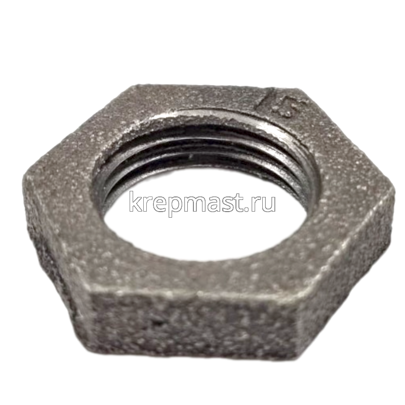Контргайка чугунная Ду15 (1/2 дюйма) ВР ГОСТ 8961-75 - применяется для соединения нескольких элементов трубопровода. Такая деталь препятствует раскручиванию соединений благодаря трению, возникающему между гайками, и применяется она там, где возможна вибрация узлов, особенно в случаях значительного движения по болту.