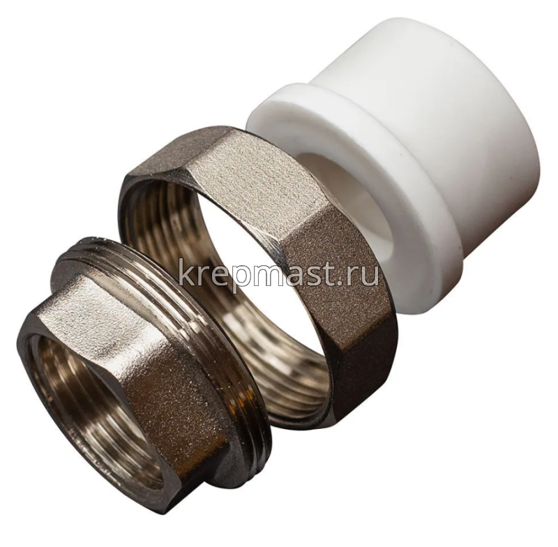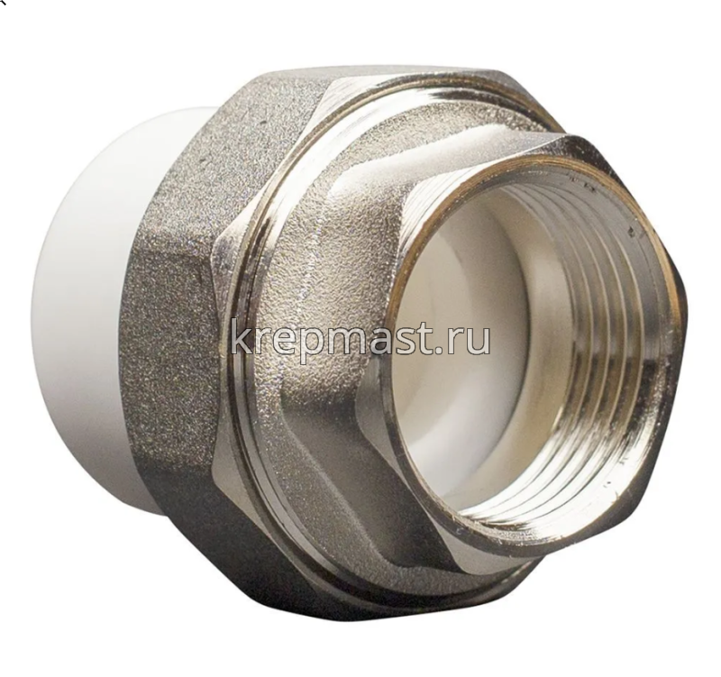 Комбинированная разъемная муфта (американка) ВР D 32- 1 п/п - разъемная муфта состоит из двух элементов, один из которых приваривается к полипропиленовой трубе посредством раструбной сварки, другой - соединяется с оборудованием или арматурой при помощи трубной резьбы.