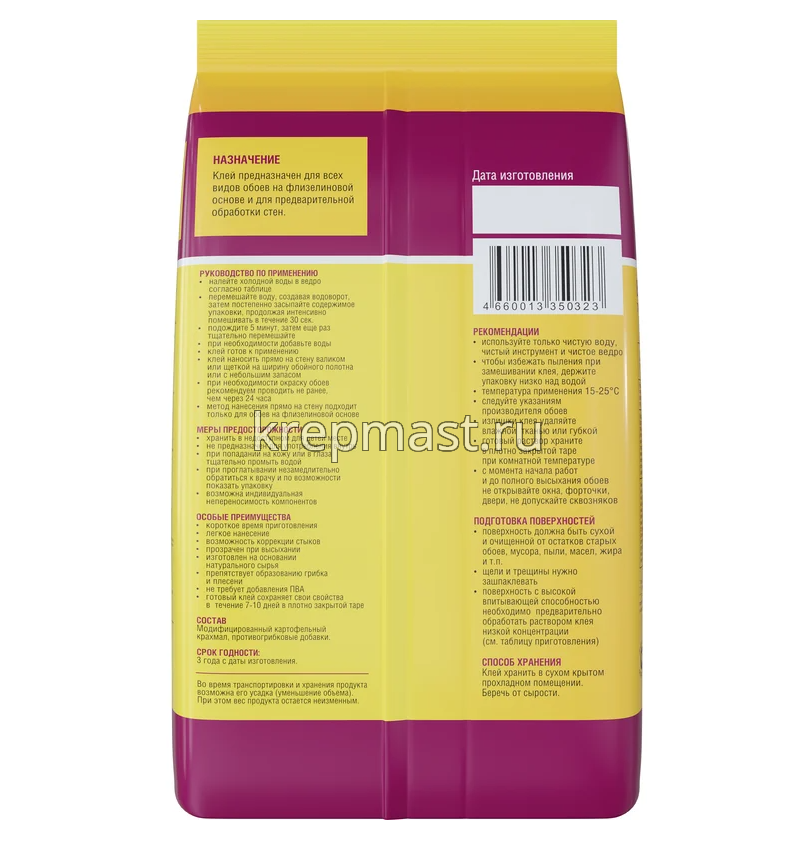 | Склеиваемые материалы | Клей предназначен для всех видов обоев на флизелиновой основе и для предварительной обработки стен. |