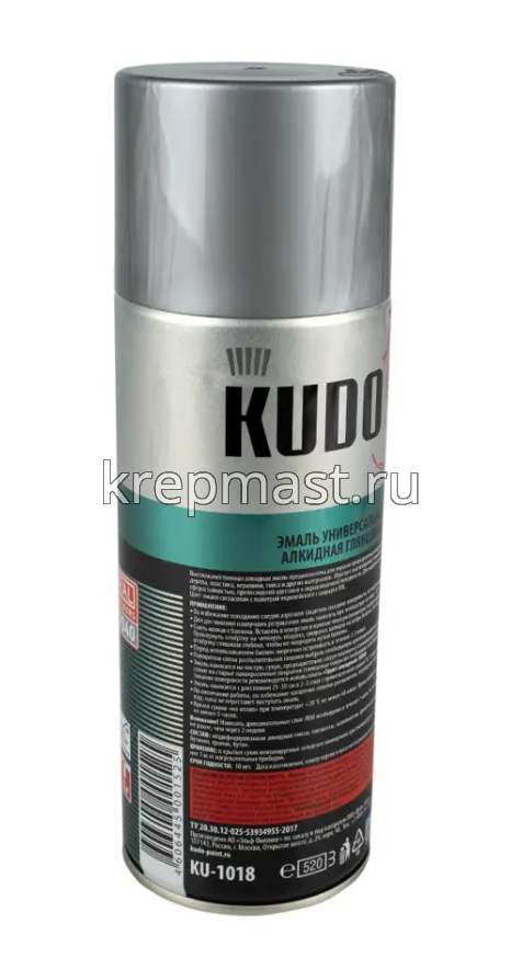 Краска KUDO серая RAL 7040 - высокопрочная универсальная глянцевая аэрозольная эмаль в баллончике, предназначенная для окраски предварительно загрунтованных металлических и деревянных поверхностей. Аэрозольная краска легко наносится на труднодоступные места. Образует долговечное покрытие с хорошей укрывистостью, атмосферостойкостью, превосходной адгезией к окрашиваемой поверхности. Применяется для наружных и внутренних работ.