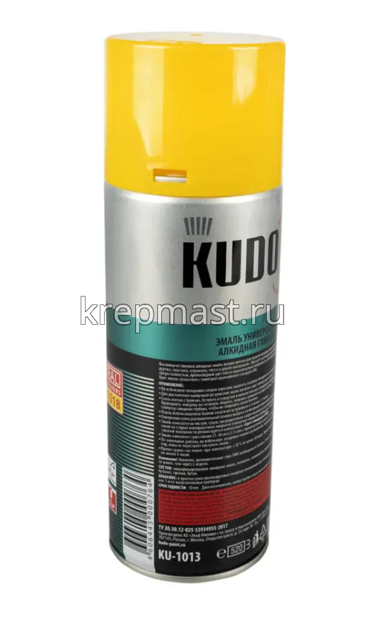 Универсальная алкидная краска эмаль-аэрозоль KUDO RAL 1013 желтая 520 мл удобна в нанесении за счет спрей-системы, используется для покраски стекла, пластика, бумаги, дерева, металла и др. Краска быстро высыхает и обладает высокой адгезией. Применяется для наружных и внутренних работ. Краска устойчива к ультрафиолету.